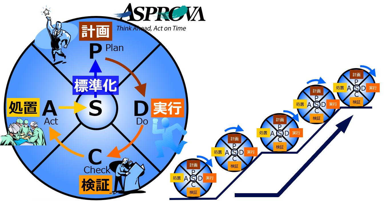 そこで、社内で培ったツールを活かしつつ、Asprova導入によって、後戻り無く・高速回転し続ける 「PDCASプロセス」 の進化に挑戦する運びとなりました。