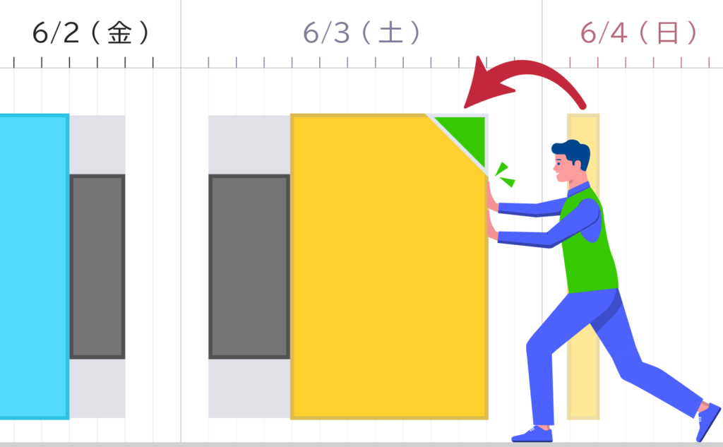 実際、アスプローバ社に声が寄せられました。「1時間のわくに1時間1秒の作業は割り付かないが、それを許容する機能がほしい。1秒分総ずらしでもいいし、はみだしを許容して割り付けてもいい」「作業員のシフトとの兼ね合いで、すき間が多くなる。多少なら縮めて押し込みたい。とくに1日の最後の作業ははみだしが許容されないので困る」といった意見です。