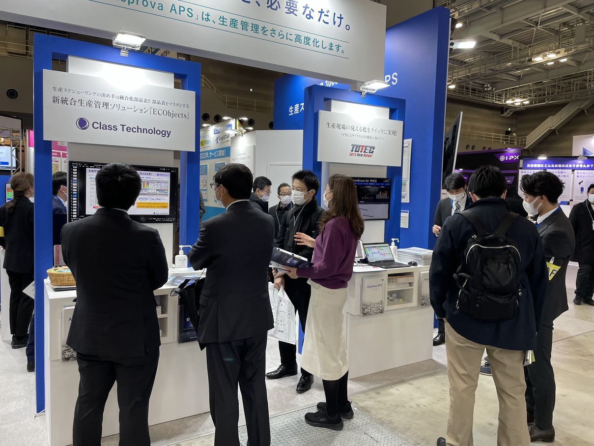 当社ブースでは生産スケジューラAsprova APSのほか、パートナー企業の生産管理ソリューション、MES、現場の見える化ツールなどスケジューラと連携するシステムが展示されました。